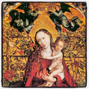 Ce n’est pas le cas à Hildesheim, dans le nord de l’Allemagne, où en l’an 815, le roi Louis le Pieux fit dire une messe à l’extérieur de la cathédrale dédiée à la Vierge. Il suspendit un reliquaire de cette dernière à une branche de l’églantier (Rosa Canina) qui poussait le long des murs de l’église. A la fin de la messe, le reliquaire s’était entremêlé dans les branches rendant son détachement impossible. Ce rosier sauvage pousse encore, plus de mille ans après, à une hauteur de 13 mètres, pour un tronc de plus de 50 cm d’épaisseur. Il a survécu aux bombardements de la deuxième guerre et carbonisé, refleurit après 3 mois. On est bien loin de la plante fluette et délicate du Petit Prince. La rose est d’ailleurs figure de bien des miracles et des apparitions. C’est elle, par exemple, qui apparait sur un sol gelé, le 12 décembre 1531, à Juan Diego sur un haut plateau de Mexico. Elle est cadeau de la Vierge Marie, pour aider le jeune homme à prouver qu’Elle est bien apparue. J’imagine le jeune homme, à genoux, dans le froid de la roche volcanique, ramasser une à une, les fleurs aux épines mordantes et à la couleur sanguinaire.