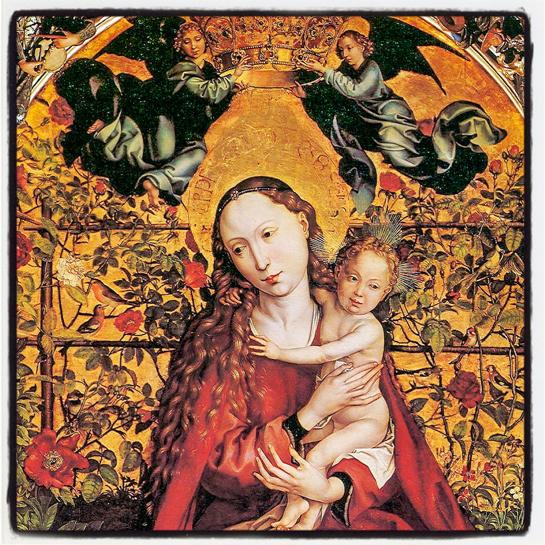 Ce n’est pas le cas à Hildesheim, dans le nord de l’Allemagne, où en l’an 815, le roi Louis le Pieux fit dire une messe à l’extérieur de la cathédrale dédiée à la Vierge. Il suspendit un reliquaire de cette dernière à une branche de l’églantier (Rosa Canina) qui poussait le long des murs de l’église. A la fin de la messe, le reliquaire s’était entremêlé dans les branches rendant son détachement impossible. Ce rosier sauvage pousse encore, plus de mille ans après, à une hauteur de 13 mètres, pour un tronc de plus de 50 cm d’épaisseur. Il a survécu aux bombardements de la deuxième guerre et carbonisé, refleurit après 3 mois. On est bien loin de la plante fluette et délicate du Petit Prince. La rose est d’ailleurs figure de bien des miracles et des apparitions. C’est elle, par exemple, qui apparait sur un sol gelé, le 12 décembre 1531, à Juan Diego sur un haut plateau de Mexico. Elle est cadeau de la Vierge Marie, pour aider le jeune homme à prouver qu’Elle est bien apparue. J’imagine le jeune homme, à genoux, dans le froid de la roche volcanique, ramasser une à une, les fleurs aux épines mordantes et à la couleur sanguinaire.